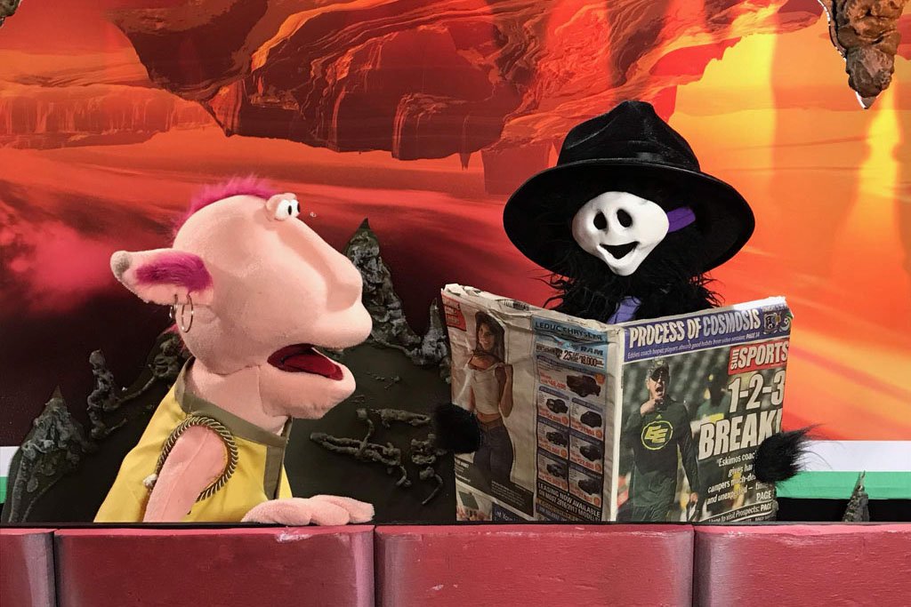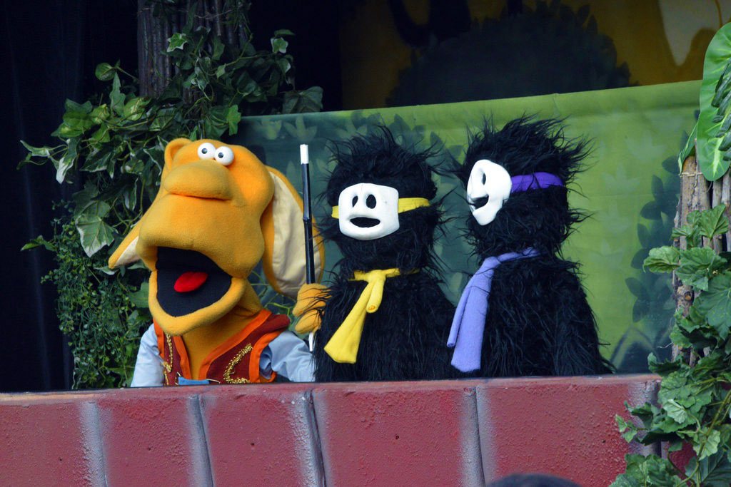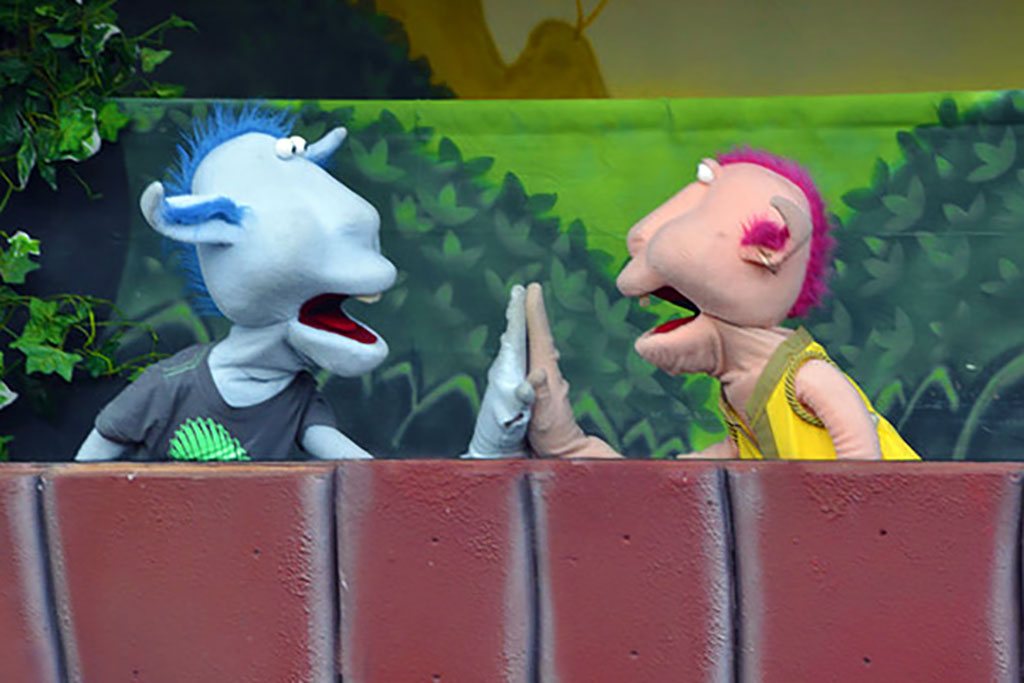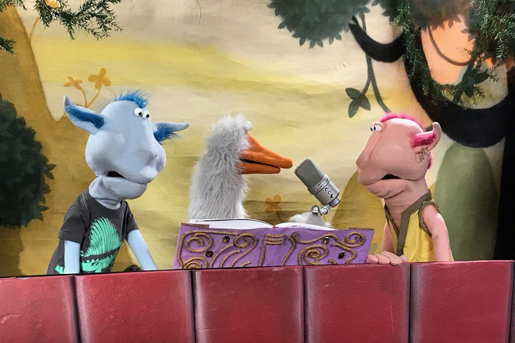 The Imaginarium Puppet Company presents: “The Durflings and the Book of Poops”. Loopy Durfling borrows the Book of Poops (a special book in which Poops the Goose emerges; sings; and ‘poops’ out treasure) from his Uncle Klaatu’s library under the condition that he take care of it. The book gets stolen by the pesky Maskinis and he embarks on a journey to recover it under the close watch of his sister Lena Durfling.